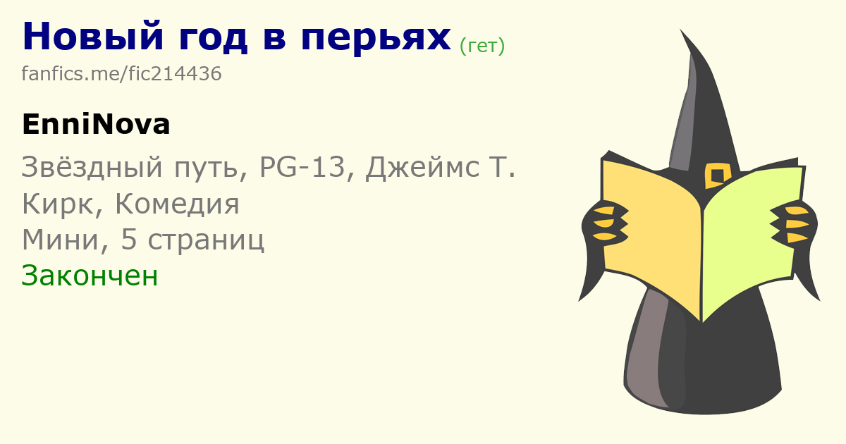 | Ах, какое чудо... в перьях! И Кирк, и Спок, и Ухара, и Маккой... и представители неизведанной планеты! Восхитительная атмосфера новогодней карусели, когда всё хоть и пошло не по плану, но... но несомненно - всё будет хорошо! И даже очень)) Рекомендую! | |